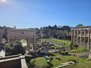 Mardi 28 en compagnie de notre guide Silvia, départ pour une très grande randonnée pédestre dans la Rome Antique et la visite du Forum, cœur névralgique de la vie romaine où les hommes se rencontraient et où l’Evangile avait été annoncé. Les vues sur les forums impériaux, le marché de Trajan, la prison Mamertine où Saint-Pierre fut incarcéré, le Colisée. Nous poursuivions notre périple vers les Basiliques Saints-Cosme-et-Damien, celle de Saint-Jean-de-Latran dédiée au sauveur, à Jean l’évangéliste, première Basilique de la chrétienté. Notre messe était célébrée à la Basilique Sainte- Marie-Majeure, première église dédiée à Marie.
