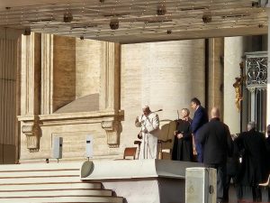 C’est avec beaucoup d’impatience, de bon matin et sous un magnifique soleil que nous nous rendions mercredi 29 place Saint-Pierre pour assister à l’audience publique du Pape François.